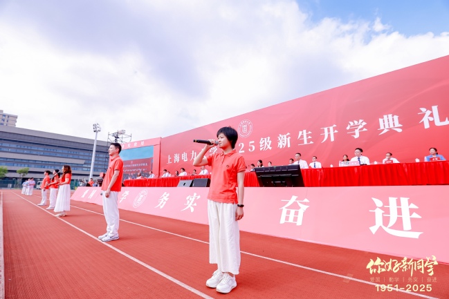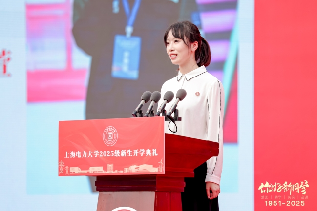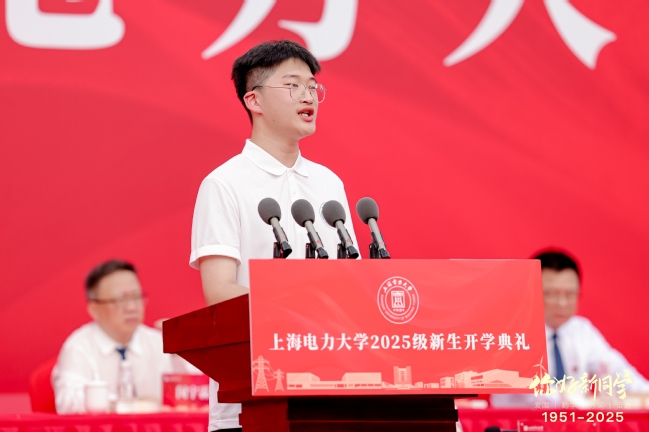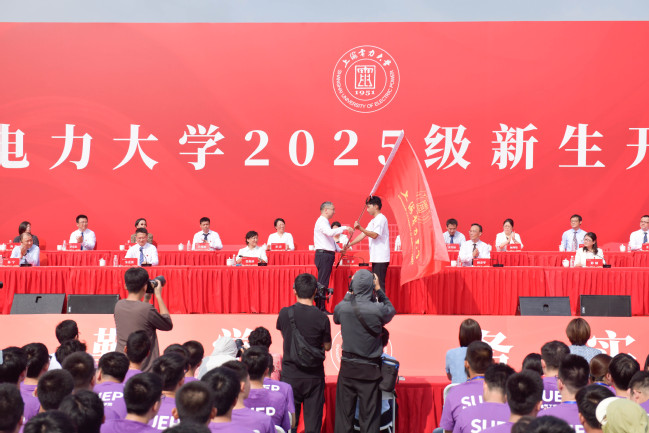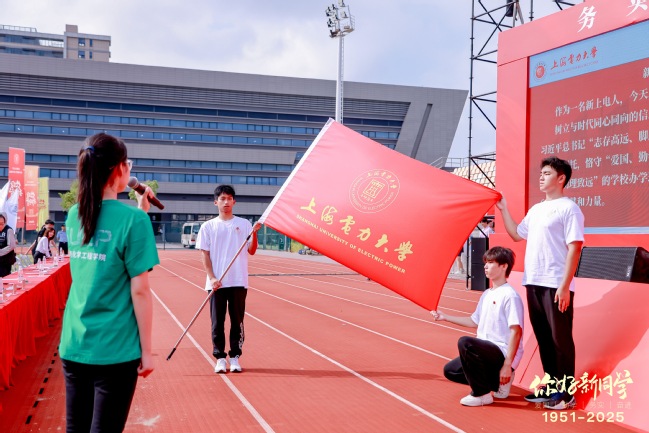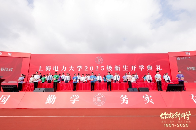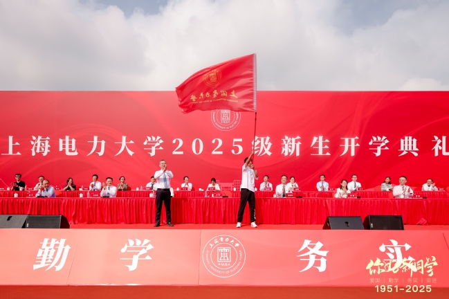 会上,校党委书记宋来为新生代表授予上海电力大学校旗。这面凝结着“爱国、勤学、务实、奋进”校训精神的校旗,凝聚着一代代上电人薪火相传的探索精神,更见证着全体师生团结奋进、追求卓越的共同信念。传递到新生代表手中的校旗,不仅是一份厚重责任的传递,更是一段崭新征程的启航。授旗仪式后,全体新生进行了庄严宣誓。
