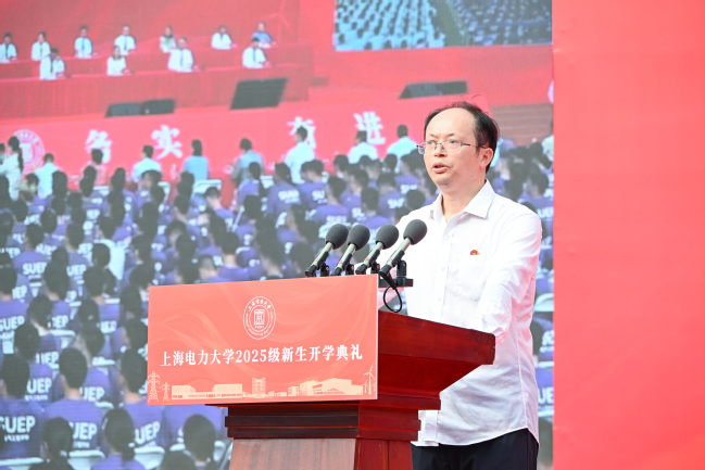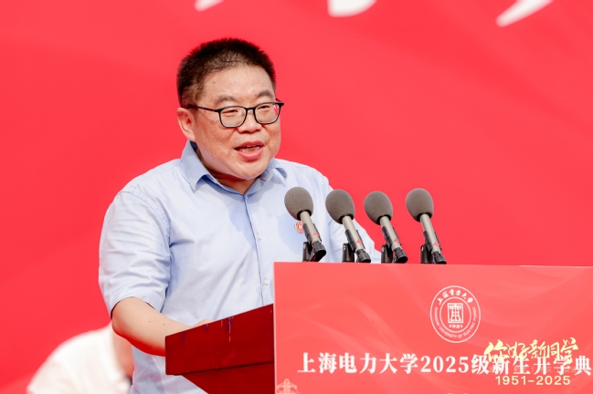 校党委副书记、校长顾春华代表学校向各位新“上电人”的到来表示欢迎,围绕“务实”一词,以“心向光明,崇实笃行”为题,发表讲话。站在人生的新起点,青年学生该如何涵养“能源报国情怀”,成长为堪当大任的拔尖创新人才?顾春华指出,青年学生必须在力行与实干中磨砺自我。他向新生提出三点希望:一是惟实正心,秉真善以立己,做实在之人。不掩饰问题、不逃避短板,在大是大非面前守得住底线,在喧嚣诱惑中保持澄明之心,在成长路上持续向更光明的方向迈进。二是惟实励新,求真知而精业,修实干之能。在课堂中学深悟透、在实验中严谨操作、在作业中独立思辨,以实事求是的态度深耕专业领域,在发现问题、解决问题的过程中突破能力边界,实现真正意义上的创新。三是惟实致用,践初心以报国,铸国之大器。将课堂所学、科研所得,切实转化为解决技术瓶颈的清晰路径,转化为驱动产业迭代的有效举措,更转化为服务国家发展需求的务实行动。