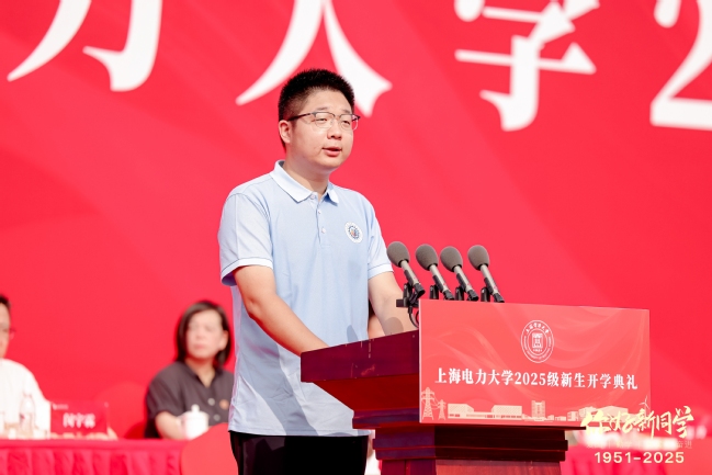 计算机科学与技术学院本科生葛天宇、能源与机械工程学院研究生周凯作为新生代表发言。年仅16岁的葛天宇,是我校今年年龄最小的新生之一。他表示,人生没有统一的时间表,成长不必困于常规,唯有保持奔跑,才能奔赴属于自己的星辰大海。周凯表示在新的阶段将继续保持勇于求知的奋进之姿,钻研创新,将宝贵的实践经验与不懈的学术探索相融合。