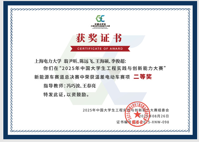 2025年中国大学生工程实践与创新能力大赛各赛项分别于7、8月在天津、杭州、大连等地举办。我校工训中心在教务处指导和支持下,立足工程实训教学基础,聚焦中国大学生工程实践与创新能力大赛,组织学生队伍在本赛事校赛、市赛、国赛三级选拔机制中,稳扎稳打,有序推进,旨在全方位提升大学生的工程实践能力、创新设计能力以及团队协作能力,积极推动学科交叉融合。最终根据大赛组委会公示的获奖排名,我校三支队伍共获得一等奖1项、二等奖2项。