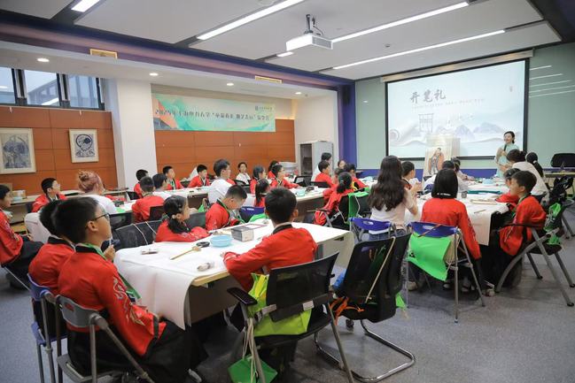 人文艺术学院依托区域化党建平台——临港新片区市民文化艺术(体验)基地,暑期开展“童蒙养正雅艺美行”人文艺术夏令营,招募临港新片区企事业单位职工子女共约80名,围绕八大主题开设诗词吟诵、传统礼仪、创意美术等课程,用美育实践助力青少年文化认同与人格塑造。