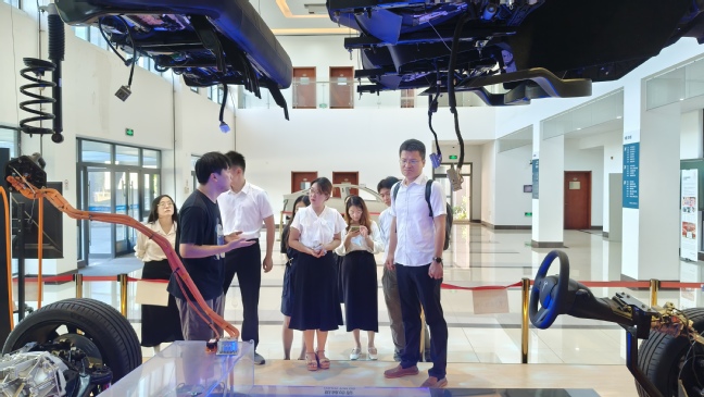 座谈会后,双方参观了我校与特斯拉合作的现代新能源产教融合基地,共同探讨了学生培养过程中“学做创一体”的培养模式,为工程与管理交叉融合的人才培养模式打开进一步思路。