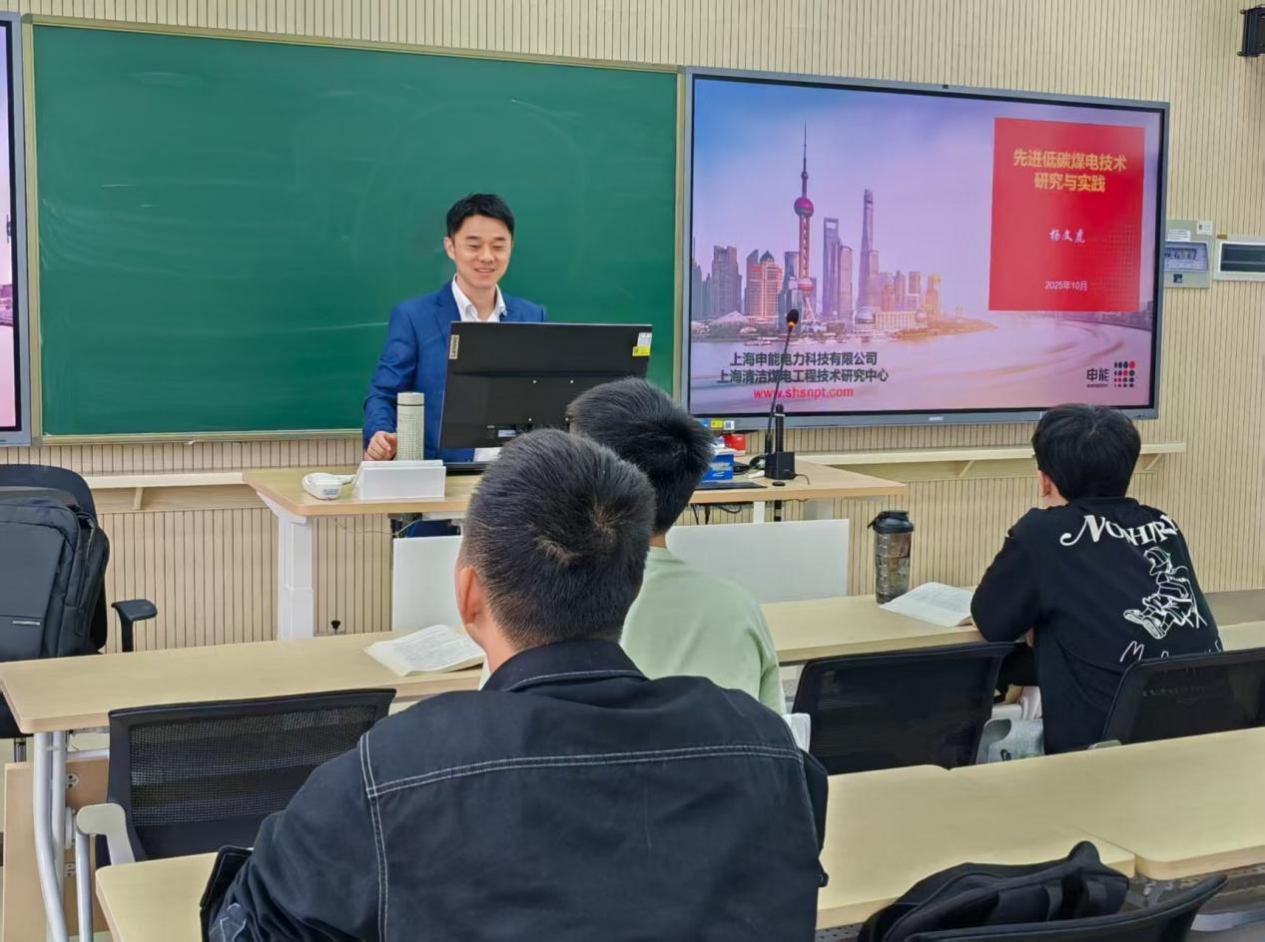 为深化产教融合,推动一流课程建设与行业前沿技术深度衔接,10月20日,上海申能电力科技有限公司副总工程师杨文虎受邀走进上海电力大学,以“先进低碳煤电技术研究与实践”为主题开展专题授课,将全球领先的工程案例转化为教学资源,为能源电力类核心课程“单元机组集控运行”的教学升级提供了关键支撑,助力学校“虚实结合、理实一体”教学改革落地。