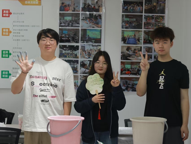 在漆扇文化体验区,志愿者们提前布置好活动物料,通过“实物展示+趣味互动”的形式开展服务。从汉代“便面”的形制特点,到明清扇面绘画的艺术风格,志愿者们用通俗的语言解读漆扇文化;“纹样猜猜看”问答环节中,迷你漆扇书签奖品激发了参与者的积极性。创意创作阶段,志愿者全程提供指导,一位小朋友在扇面上写下“上海 年轻人的城”,传统扇面与现代表达碰撞出独特火花,展现出非遗文化的当代活力。