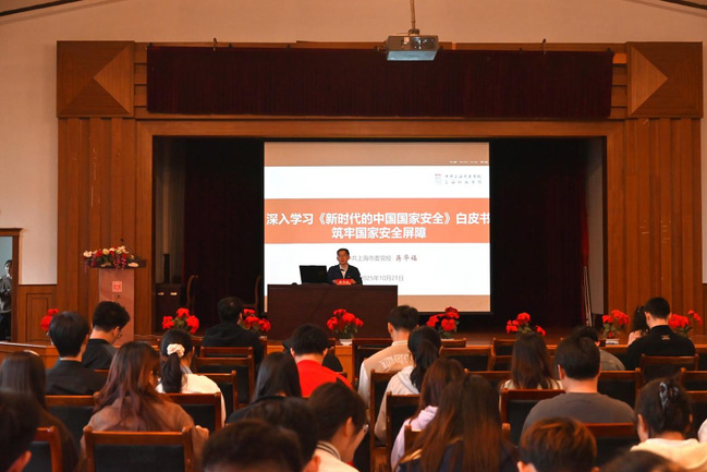 为全面宣传贯彻总体国家安全观,切实增强学生国家安全意识和防范能力,10月21日下午,我校特邀上海交通大学法学院特聘教授沈伟与中共上海市委党校专任教师蒋华福,分别在临港和杨浦校区开展国家安全教育专题培训。全校200余名学生干部参加培训。