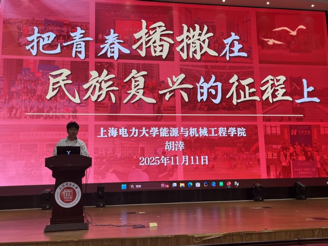 学院第一学生党支部书记胡涬以“时刻准备,勇担使命”为题作专题讲座,结合个人成长经历,激励学员坚定理想信念、锤炼过硬本领。他强调,新时代青年应主动将个人发展融入国家需求,作为能机学子,更要立足专业特色,以实际行动践行“能源的饭碗必须端在自己手里”的使命担当。