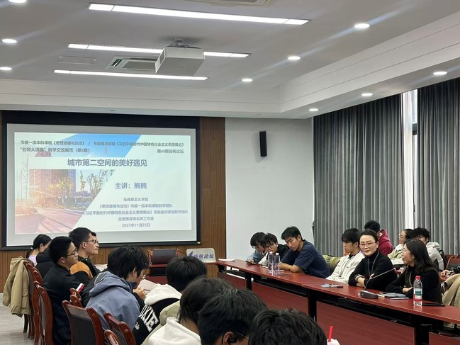 11月25日,马克思主义学院《思想道德与法治》市级一流本科课程教学团队与《习近平新时代中国特色社会主义思想概论》市级重点课程教学团队联合举办第三期“名师大课堂”暨第60期“扬帆论坛”教学交流活动。本次讲座特邀全国劳动模范、全国民族团结进步模范个人、上海地铁第一运营有限公司人民广场站长熊熊为师生带来一场生动而深刻的“大思政课”。马克思主义学院副院长、《思想道德与法治》市级一流本科课程负责人焦凤梅,思想道德与法治教研室、习近平新时代中国特色社会主义思想概论教研室教师及60余名同学代表参加活动,活动由学院杨红娜副教授主持。