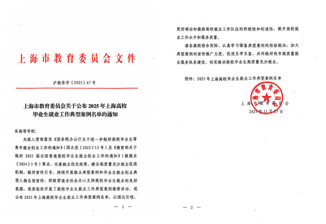 为深入贯彻落实《国务院办公厅关于进一步做好高校毕业生等青年就业创业工作的通知》(国办发〔2022〕13号)及《教育部关于做好2025届全国普通高校毕业生就业创业工作的通知》(教就业〔2024〕5号)要求,完善就业优先政策,健全高质量充分就业促进机制,做好宣传引导,持续开展就业典型案例和毕业生就业创业典型人物总结宣传,积极营造全社会关心支持高校毕业生就业的良好氛围,上海市组织开展了高校毕业生就业工作典型案例推荐活动。