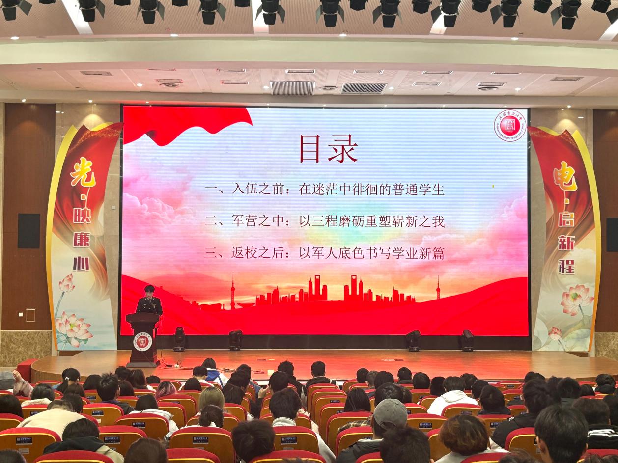 宣讲会上,王涛首先从征兵工作的核心环节切入,系统讲解了征兵总体进度安排、体检标准、政审要求等基础条件,清晰明确地为同学们划定了报名的时间节点与资格门槛,确保大家对征兵基本流程有全面且精准的认知。