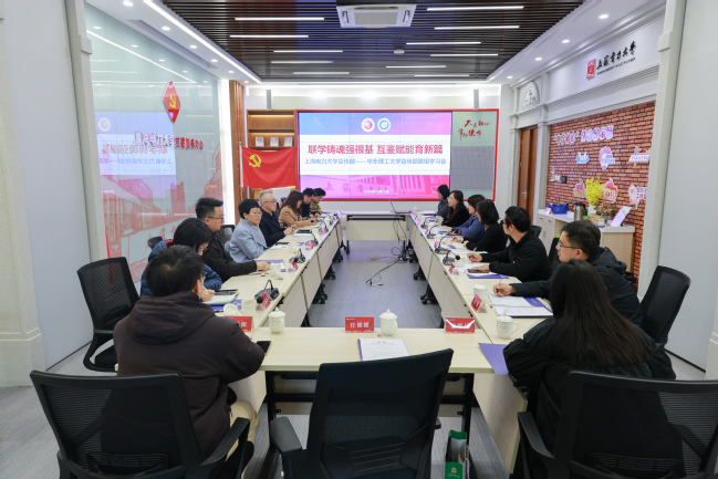 为深入学习贯彻习近平新时代中国特色社会主义思想,全面落实党的二十届四中全会精神及党中央关于宣传思想文化工作的决策部署,深化高校宣传思想文化工作的交流协作与互学互鉴,12月12日上午,校党委宣传部与华东理工大学党委宣传部在我校临港校区党建服务中心开展联组学习会。两校党委宣传部负责人、部门宣传工作人员参加本次学习会。