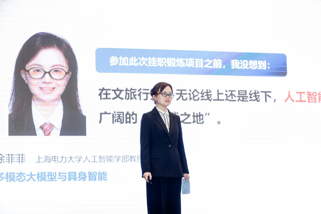 “高校教师不是‘过客’,而是把论文写在大地上的‘新文旅人’。”徐菲菲表示,半年的挂职锻炼让她深刻体会到技术应用必须服务于业务需求和产业发展,也锻炼了跨部门协同与复杂项目落地能力。回到校园后,她将把这些实战案例转化为鲜活的教学素材与科研资源,打造“文旅+AI”产教融合平台,着力培育既懂技术又通产业的复合型人才,并积极申报大学生创新创业项目,真正实现“课堂—实验室—应用场景”的贯通与循环。