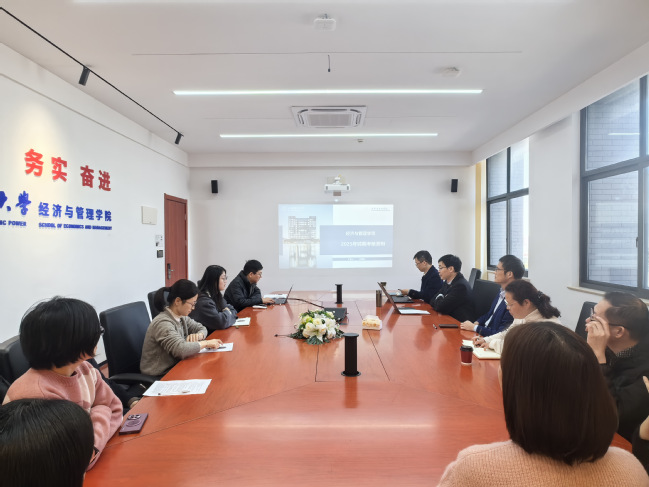 12月16日,经济与管理学院在临港校区经外楼A509会议室举行2025年度教职工聘期期满考核答辩会,对聘用合同即将到期的教职工进行了全面的聘期考核。此次答辩会由院长杜刚主持,学院党委书记潘华、党委副书记孟延新、副院长胡伟以及学院聘任委员会全体成员出席会议。