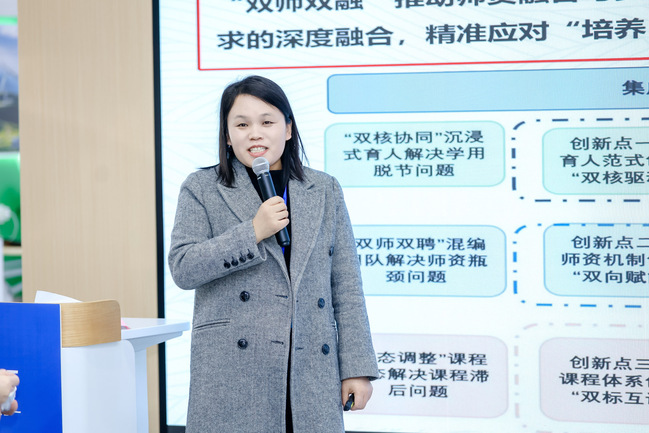 政策引领与平台支撑:临港新片区人才发展服务中心主任张培围绕“3-6-0”政策服务体系,系统阐释了临港新片区推动产教融合的政策导向。该体系以“三项政策支撑、六类补贴助力、零等待服务保障”为核心,构建全方位人才发展生态。张培特别介绍了“创客之家”“青年驿站”等特色载体,为高校师生、青年人才提供了从创新孵化到生活安居的全周期服务支持,展现了临港打造更具温度与活力的人才高地的决心与行动。