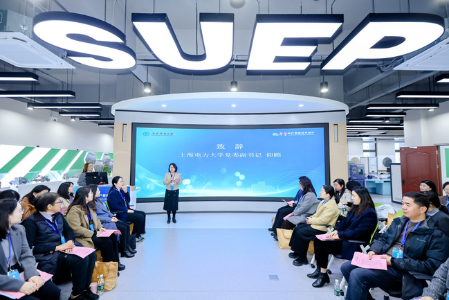临港冬日暖阳映照下,一场聚焦“她力量”与“产教融合”的深度对话于12月18日在我校临港校区未来能源创享中心热烈开展。由校工会(妇工委)和女教授联谊会联合主办的“‘她力量’在产教融合中前行”系列沙龙举办,来自上海市教育系统、临港新片区管委会、临港集团,区域内多所高校及重点企业的女性领导、教授学者、企业家与工匠代表齐聚一堂,共同探讨女性在贯通教育链、人才链、产业链与创新链中的独特作用与创新实践。环境与化学工程学院副院长辛志玲担任沙龙主持人。