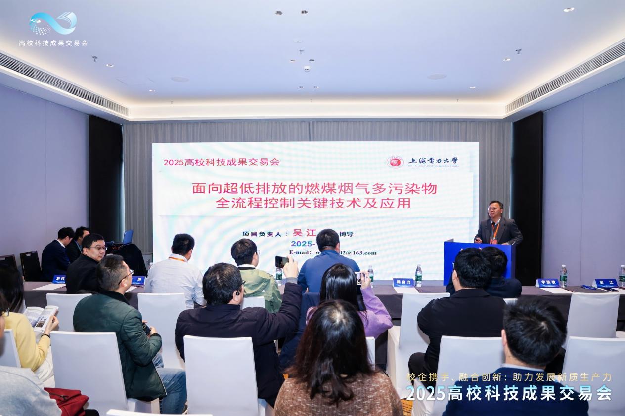 12月15日至17日,由教育部高等学校科学研究发展中心与全国高校区域技术转移转化中心(粤港澳大湾区)联合主办的2025高校科技成果交易会(以下简称“2025科交会”)在广州琶洲广交会展馆举办,大会以“校企携手、融合创新:助力发展新质生产力”为核心主题。我校携十项科技成果参展,包括“面向超低排放的燃煤烟气多污染物全流程控制关键技术及应用”“旋转机械振动边缘采集卡”“废旧锂离子电池预处理一体化设备”“废旧锂离子电池/电解铝废渣闭环协同再生技术”“分布式光储场景能效提升智慧监测系统”“极端环境下输电系统多模态感知监测与除冰系统”“基于边缘智能计算的储能电池仓信息采集与运维系统”“长续航光伏板缺陷检测多模态图像数据空中平台”“高铁混合电力系统光储协同规划方法及系统”和“燃料电池混合动力能量管理及智能驱动控制技术”。