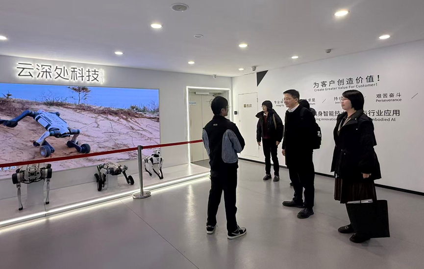 12月17日下午,人工智能学部主任严怀成带队,与学部党委副书记齐永晓、副主任陈辉、副主任薛亮及青年教师管丹丹一同走访杭州云深处科技股份有限公司,围绕产学研融合与AI+能源电力创新发展路径展开深入交流。云深处科技教育事业部负责人柳浪陪同参观,双方在技术研发、人才培养与项目合作等方面达成多项共识。