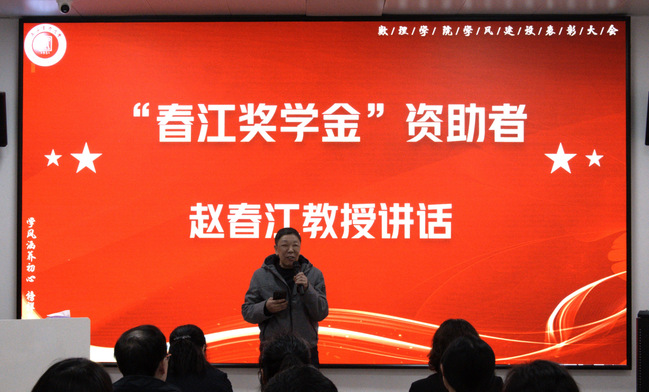 赵春江教授在讲话中回顾了自己投身教育事业的初心,分享了自己的科研之路和设立奖学金的初衷,勉励同学们珍惜大学时光,夯实数理基础,培养严谨学风,将来成为对国家和社会有用的栋梁之材。