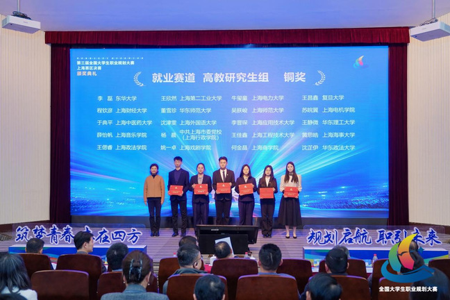 近日,第三届全国大学生职业规划大赛上海赛区决赛闭幕。我校学生在此次比赛中表现突出,共获得银奖2项、铜奖2项。其中,能源与机械工程学院卢思坦、电气工程学部白宇希获成长赛道高教组银奖;经济与管理学院杨泽元获就业赛道高教本科生组铜奖;电气工程学部牛玺童获就业赛道高教研究生组铜奖。学校获评优秀组织奖。
