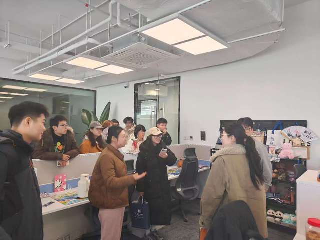 参观过程中,灯儿塔公司负责人向师生们展示了其公司团队研发的文创产品,并鼓励同学们在大学期间积极参与创新创业类活动与竞赛,在实践中积累经验、锤炼本领,为未来发展储备宝贵财富。各位同学围绕创业项目落地、团队运营管理等话题展开热烈讨论,现场学习氛围浓厚。