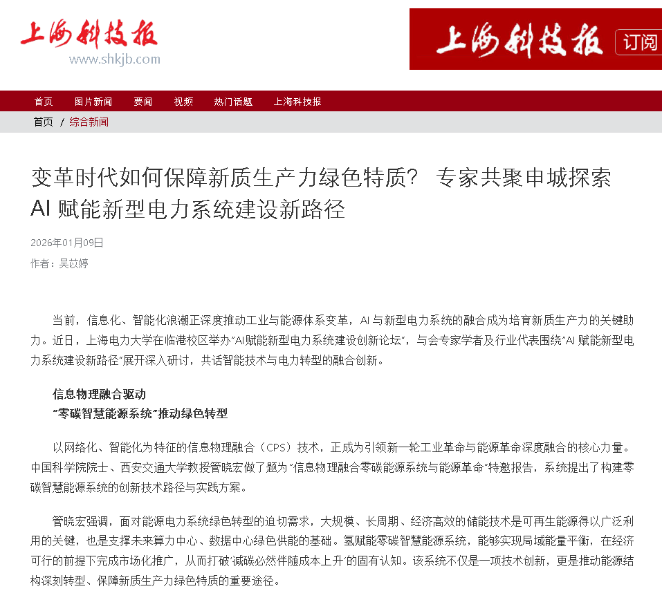 【上海科技报】变革时代如何保障新质生产力绿色特质?专家共聚申城探索AI赋能新型电力系统建设新路径