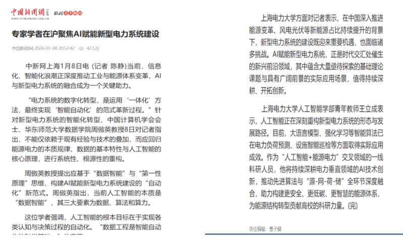 【中国新闻网】专家学者在沪聚焦AI赋能新型电力系统建设