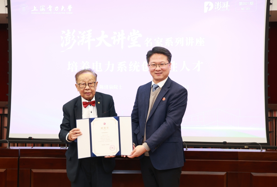 2026年1月24日上午,上海电力大学建校75周年高质量发展系列活动之“澎湃大讲堂”首场讲座成功举办。中国工程院院士陈清泉应邀作题为《培养电力系统创新性人才》的主题报告。报告由校党委副书记、副校长朱克勇主持。