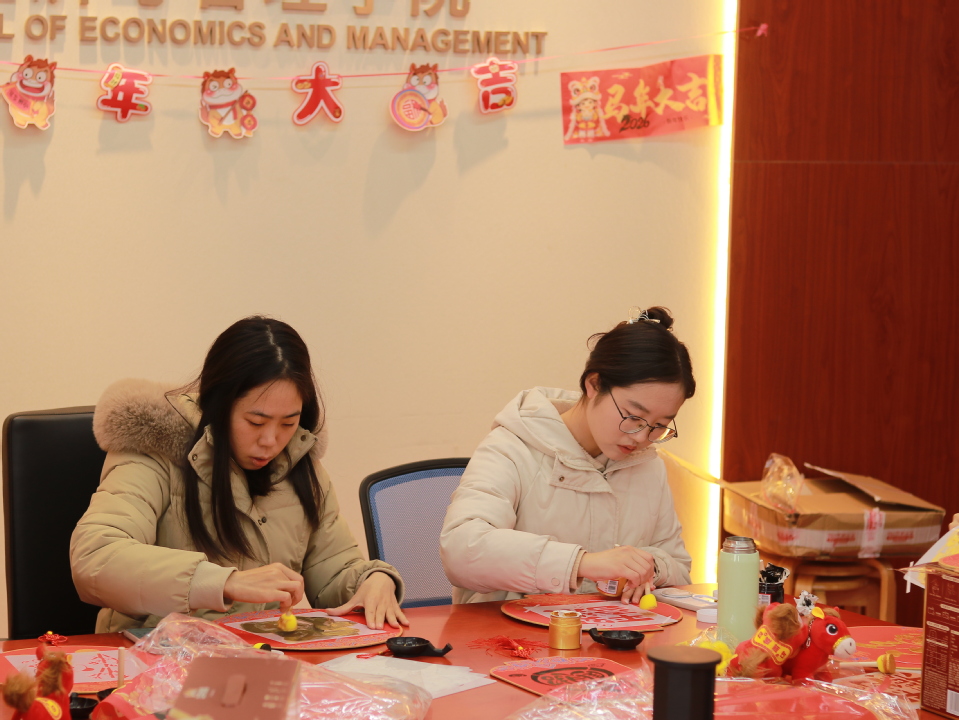 学院为留校学生精心筹备了新春联欢活动。同学们欢聚一室、暖意相依,共同参与“迎春送福”拓扇及剪窗花活动。活动中,大家满怀热忱、全情投入,动手拓印了一份份精美的扇面,将“福”字书写在纸面、将窗花剪出各色形状,在动手实践中传承传统文化、陶冶情操。整场活动氛围轻松和睦、暖意融融,一件件凝聚着同学们巧思与心意的手工作品相继诞生,每一件作品都承载着大家对马年新春的美好向往与真挚期盼。