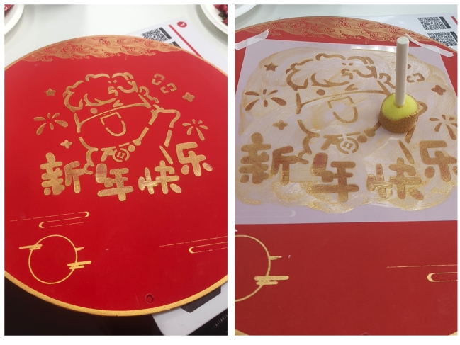 活动伊始,一场充满传统韵味的新年拓福手工活动热闹开启。同学们围坐在一起,手持拓印工具,全神贯注地在灯笼上拓印福字。每一个福字都饱含着同学们对新年的美好期许,现场充满着浓浓的年味。