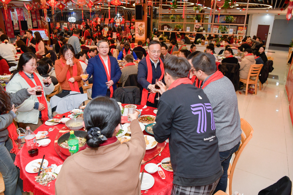 活动中,宋来、顾春华带领校领导向留校师生和后勤、保卫等部门的保障人员代表一一送上新春祝福,询问大家学习、工作、生活情况,并对大家的支持与坚守表示感谢。校领导们与参加活动所有人员举杯贺新春,一声声问候、一句句祝福,让现场师生真切感受到学校的关怀和温暖,张川和职能部门负责人、学生代表的即兴表演更是让全场氛围迅速升温。