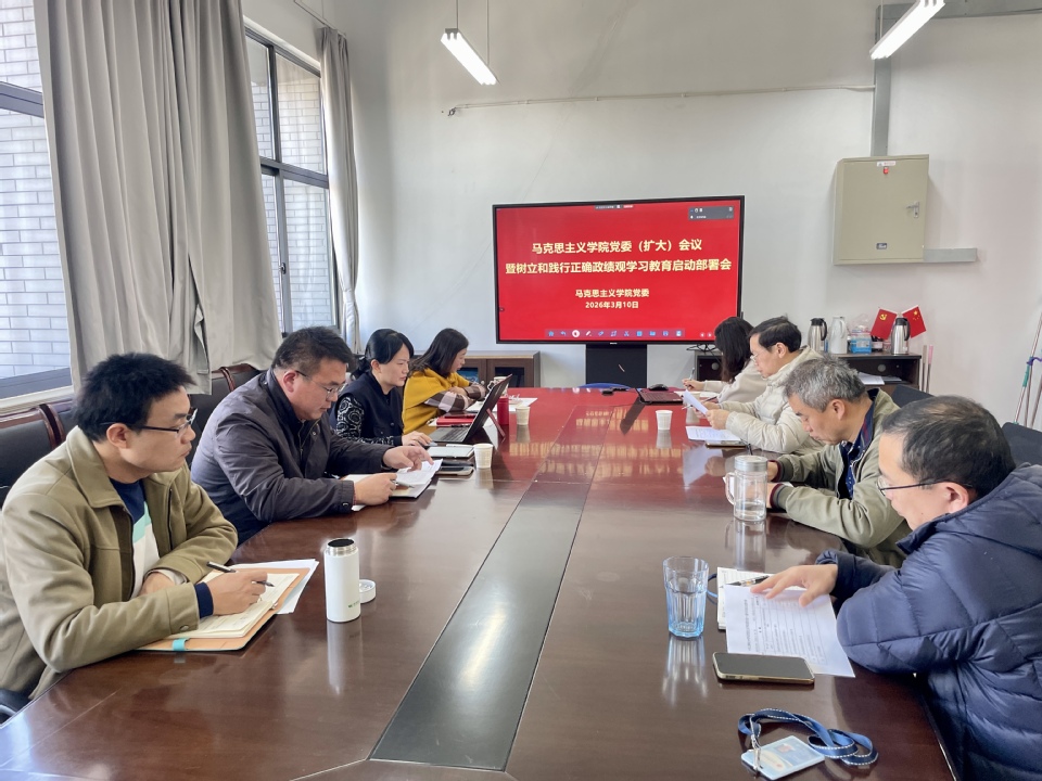 会议指出,要深刻认识开展树立和践行正确政绩观学习教育的重要意义。开展树立和践行正确政绩观学习教育,是党中央立足新时代党的建设总要求作出的重要部署。马克思主义学院作为落实立德树人根本任务的重要阵地,学习宣传阐释党的创新理论的重要平台,必须先学一步,学深一步,牢牢把握立党为公、为民造福、科学决策、真抓实干总要求,坚持学查改一体推进,把正确政绩观贯穿学院党的建设、立德树人、思政课教学、理论研究、学科建设和社会服务全过程。