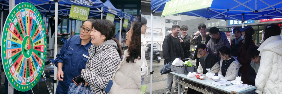 市集设置生活便民、健康生活、安全守护三大主题区域,推出近二十项贴近师生需求的实用服务。生活便民区,“巧手焕新”维修站提供自行车维修、衣物缝补、挂烫、眼镜清洗等细致服务;“形象管家”服务点理发师为师生免费理发,美容师传授护肤心得;“数码帮手”服务台前,手机贴膜、屏幕清洁、软件安装指导等热门项目前排起长队。健康生活区,“杏林暖意”健康角提供血压血糖检测、急救知识教学及肩颈放松按摩,传递温情关怀;“美好生活”加油站通过废旧物品回收、垃圾分类竞猜、快闪答题等形式,倡导绿色生活方式,深受学生喜爱。安全守护区,“反诈先锋”摊位结合典型案例剖析、趣味问答互动,向师生普及刷单返利、冒充客服、校园贷等高发诈骗防范要点,筑牢校园安全防线。活动当天还推出学生公寓洗衣机免费使用等重磅暖心福利,师生纷纷表示后勤服务越来越有温度。