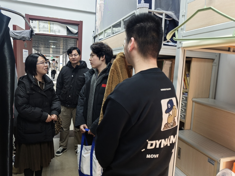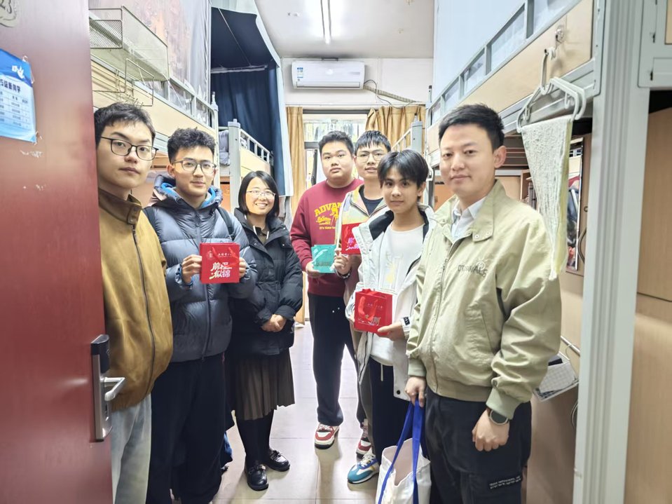 新学期伊始,为切实了解学生思想动态与需求,营造温馨和谐的寝室氛围。近日,人工智能学部党委副书记齐永晓带领学部全体辅导员,深入学生宿舍,开展“春日送温暖”走访慰问活动,为同学们送去定制的寄语卡片与“温暖礼包”,在盎然春意中传递学部对学生的殷切关怀与勉励。