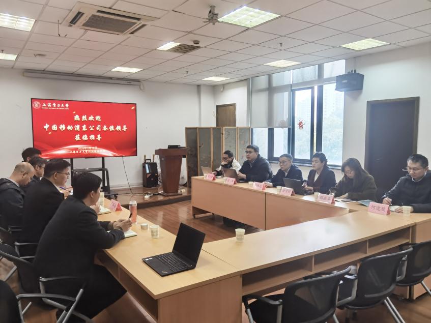 3 月 19 日,中国移动浦东分公司一行到访我校杨浦校区,与我校信息化与数据管理中心、人工智能学部开展交流。双方围绕算力服务、项目合作、平台建设及产教融合等议题进行深入探讨,进一步深化校企互信共识,推动资源共享与协同创新。中国移动浦东分公司政企客户部经理何伟达、政企解决方案经理徐佳妮、云能中心解决方案经理吕臻等一行六人到访。我校人工智能学部主任严怀成、副主任李晋国,信息化与数据管理中心副主任王晓斌及学部教师代表等参会。