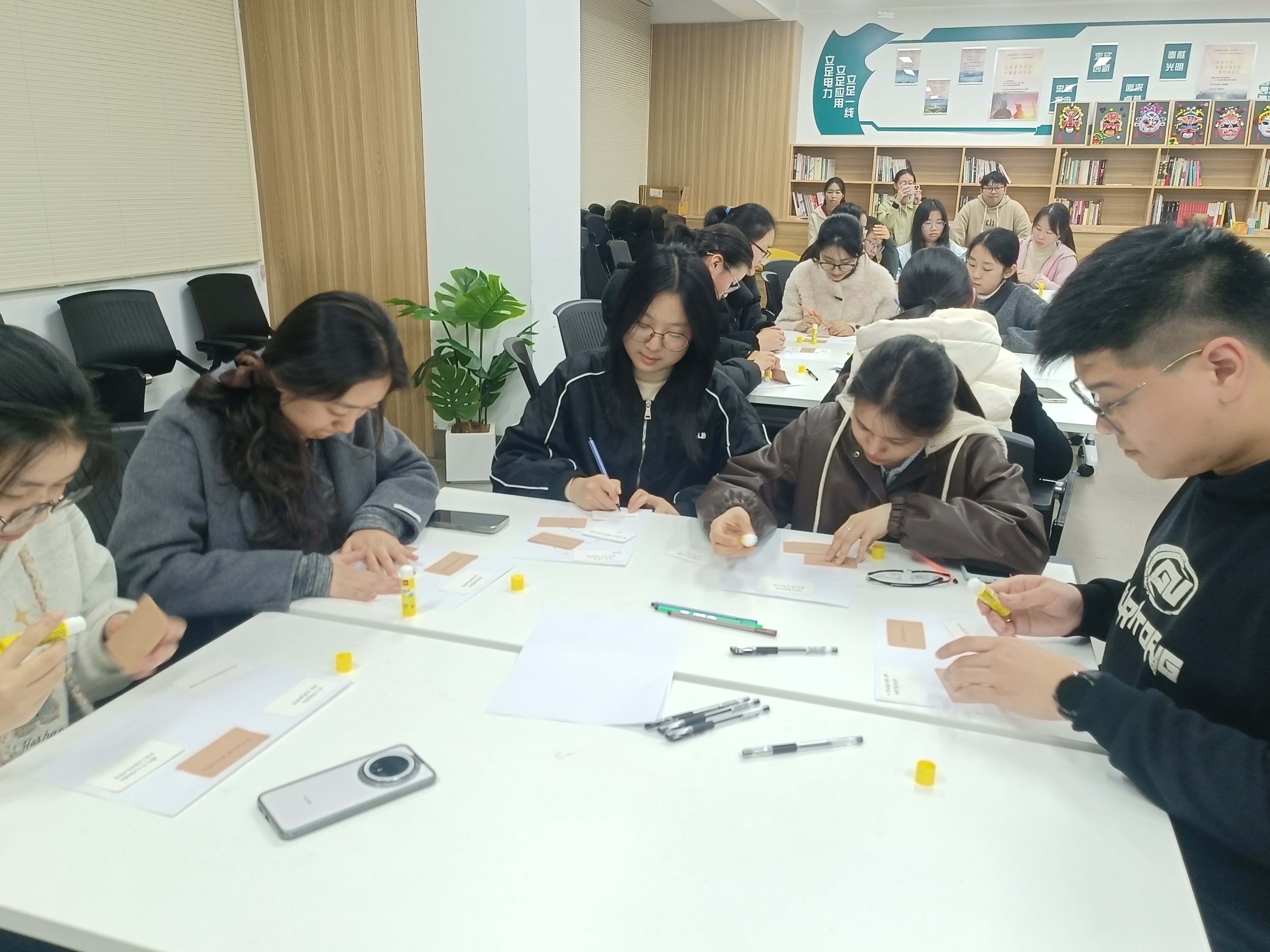 活动以抽卡演绎、手工创作的趣味互动形式展开,引导同学们解锁专属生命剧本、正视自我特质,从10岁的童年际遇,到20岁的青春迷茫,再到30岁的职场选择、40岁的生活沉淀,大家随机抽取不同年龄段,沉浸式体验人生各阶段,包括专业学习的困境、遇到良师益友的欣喜、工作陷入迷茫的瓶颈等,在沉浸式体验与深度思考中体悟生命的独特价值与珍贵意义。在分享环节中,同学们积极分享心得体会,在交流中共情共鸣,对当下的经历和未来的人生规划有了新的思考。