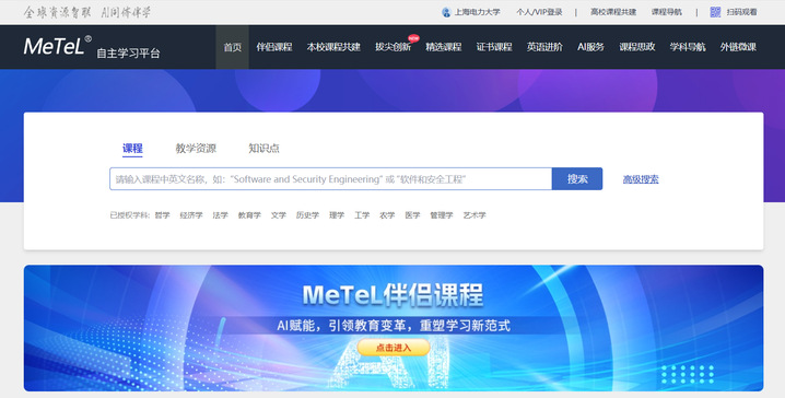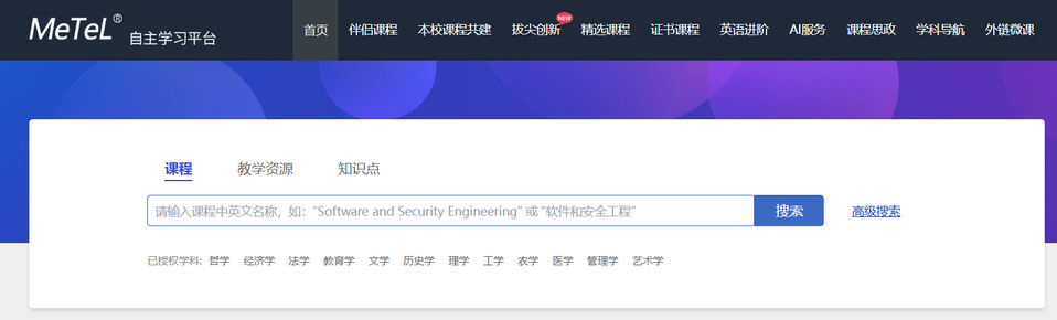 MeTeL平台是由国道数据提供、持续动态更新的英文多媒体课程数据库,适用于线上教学(Online Learning)、双语教学以及本科生、研究生和留学生的自主学习(eLearning。同时,平台为教师提供数字化授课备课资源与教学支持服务(eTeaching,助力教学改革与课程建设。