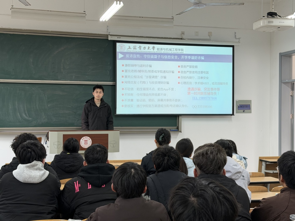 能源与机械工程学院高度重视校园反诈工作,自2026年春季学期开学以来,坚持“预防为主、防治结合”的原则,多举措推进全方位、全覆盖的反诈安全教育。学院以主题班会、首日教育为核心载体,结合不同年级学生特点,聚焦高发诈骗类型,通过案例剖析引导学生主动学习反诈知识,切实提升识骗、防骗、拒骗能力,实现全院学生反诈教育无死角、全覆盖。