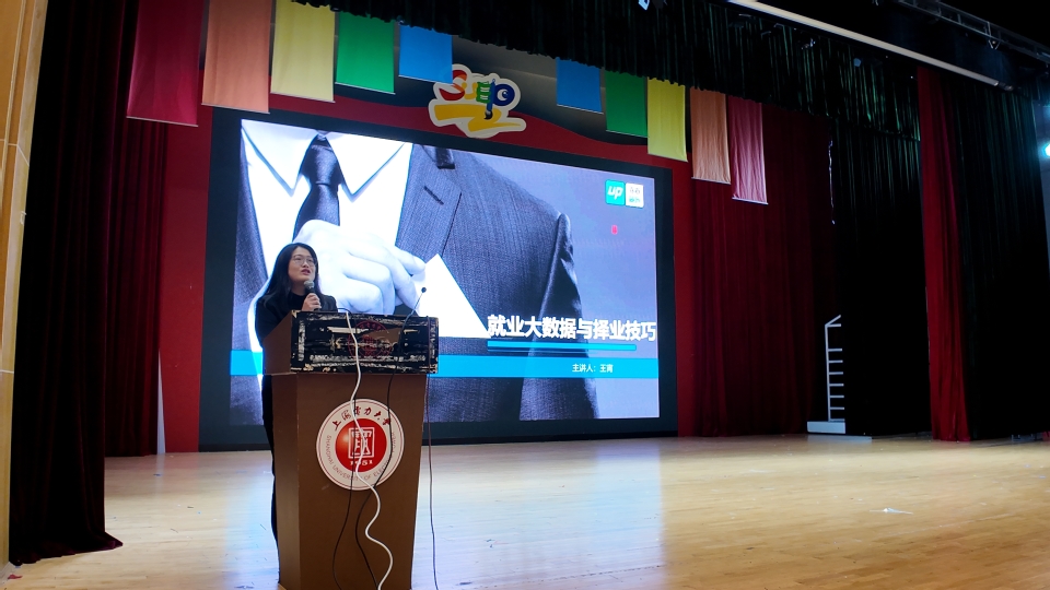 为精准对接2027届毕业生求职需求,破解学生求职迷茫,4月14日下午,经济与管理学院于临港校区大学生活动中心演艺厅举办《大学生就业与创业实务》课程系列讲座之就业市场分析与信息获取策略。本次活动特邀乔布简历资深求职导师王宵老师担任主讲人,学院2023级全体学生参与,讲座由辅导员高欣月主持。