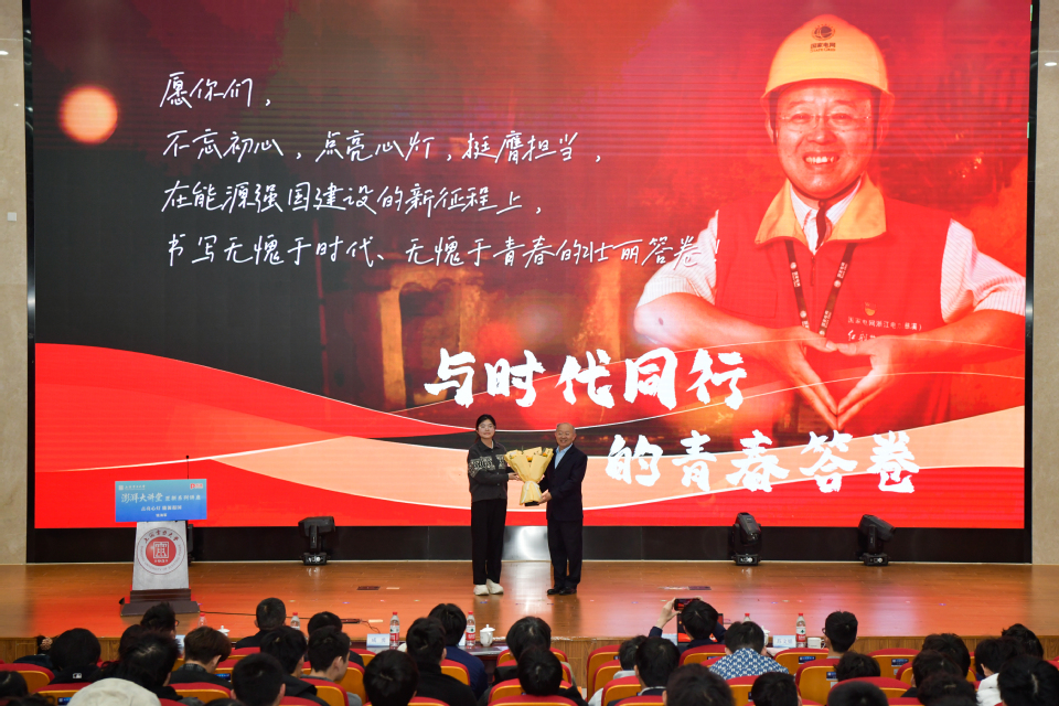 报告中,钱海军结合自身三十余年扎根电力一线、二十六年坚守志愿服务的真实经历,以“父亲的那盏灯”“一张名片的故事”等生动细节为切入点,娓娓道来自己从普通电力工人成长为“百姓身边的点灯人”的奋斗历程,引领师生深刻感悟为民初心;他以时代机遇、人生抉择、爱岗敬业为脉络,讲述扎根基层、服务人民的赤诚情怀,诠释水滴石穿、久久为功的奋斗精神;结合组织引领、“千户万灯”公益项目、全国人大代表履职等亲身实践,展现关键时刻挺身而出的责任担当与新时代共产党员的先锋本色。他还结合习近平总书记对青年的殷切嘱托和能源强国建设,深刻阐释新时代“点灯人”的精神内涵,勉励上电学子向下扎根、向上生长,将个人理想融入国家发展大局,以“挺膺担当”之姿,书写与时代同行的青春答卷。