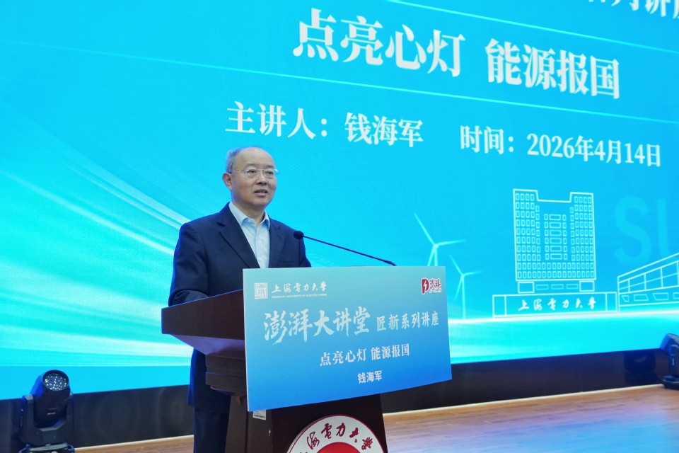 4月14日下午,我校“澎湃大讲堂”匠新系列讲座在临港校区学术楼117报告厅举行。第十四届全国人大代表、“时代楷模”、全国劳动模范、全国最美志愿者、全国高校“中国共产党人精神谱系”宣讲团专家、国网慈溪市供电公司客户服务中心社区经理钱海军应邀作题为《点亮心灯,能源报国》的专题报告。