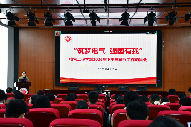 为落实年度征兵工作部署,激发青年学子参军报国热情,4月16日,电气工程学部在临港校区学术楼103报告厅召开“筑梦电气 强国有我”2026年秋季征兵工作动员会。学部党委副书记叶华刚、辅导员代表、退伍大学生宣讲员及本科生代表参加。动员会由学部征兵专项工作负责人曲家瑶主持。