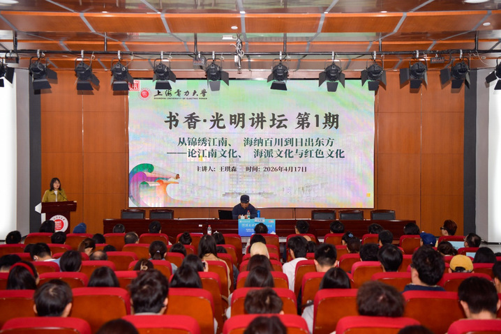 4月17日下午,著名学者、作家、书画篆刻家王琪森做客澎湃大讲堂,作了题为《从锦绣江南、海纳百川到日出东方——论江南文化、海派文化与红色文化》的精彩报告。讲座由图书馆馆长潘耀芳主持,全校近两百名师生到场聆听,现场座无虚席,气氛热烈。本次讲座也是图书馆书香•光明讲坛第一期活动。
