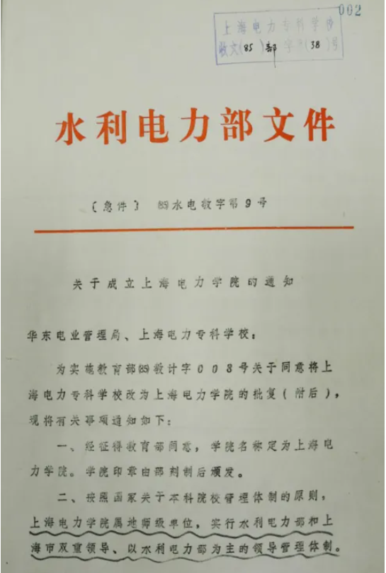 1985年经教育部批准,水利电力部下文上海电力工业专科学校升格为上海电力学院
