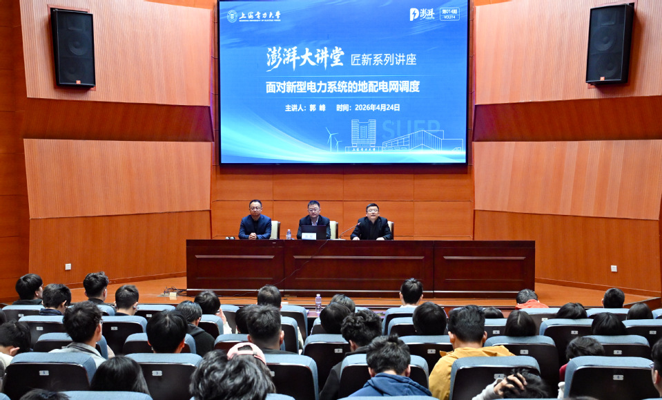 4月24日下午,上海电力大学建校75周年高质量发展系列活动之第十四期“澎湃大讲堂”之匠新系列讲座在杨浦校区行政中心1楼报告厅举行。国网劳模、国网上海市电力公司市区供电公司调控中心主任助理、上海市电力公司配网调度专业高级专家郭峰受邀作题为《面对新型电力系统的地配电网调度》的报告。党委学生工作部(学生处)副部长(副处长)成勇出席报告会,电气工程学部辅导员代表及近300名学生代表参加。报告会由电气工程学部党委副书记叶华刚主持。
