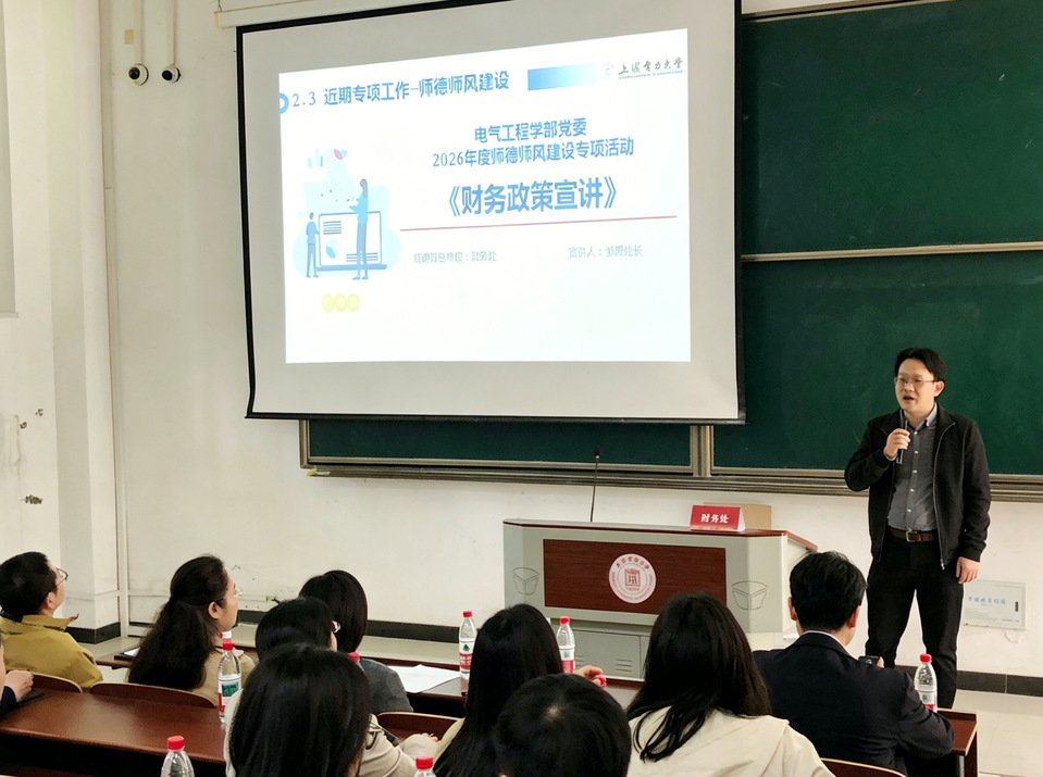 4月24日下午,电气工程学部在杨浦校区明理楼召开全体教职员工大会。学部领导班子成员,全体教师参加了会议,会议特邀校财务处、科学技术研究院领导及工作人员到场宣讲。