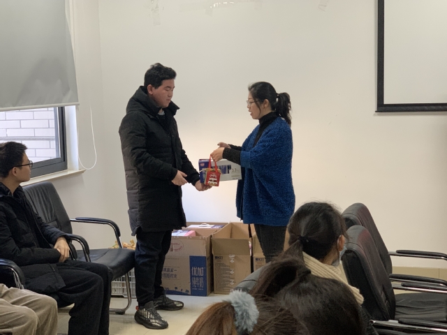 与会院领导详细了解考研学生的学习、生活、迎考等情况,从防疫要求、考前准备和身心健康等方面提出了建议,鼓励大家要迎难而上、勤下苦功,一定能拨云见日,实现目标;同时也希望大家放下压力的包袱,调整迎考状态,坚持到底。最后,学院将精心准备的考研慰问品发放给同学们,牛奶和橙子的组合寓意着“‘牛’气冲天欢折桂,马到‘橙’功再扬帆”,表达了学院对考研学子们的衷心祝福和殷切期望。