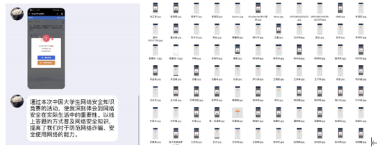 提升安全意识,以考促学提本领。为进一步提高学生国家安全知识水平,提升维护国家安全的能力,学院还组织、动员学生通过“中国大学生在线”官网观看学习全国高校活动成果、精品课程,参与“守护青春 网络有你”全国大学生网络安全知识答题活动。通过线上学习与答题方式普及网络安全知识,帮助学生提升网络安全素养,提高大学生防范网络诈骗、安全使用网络的能力,切实做到学习入心,以学敦行。