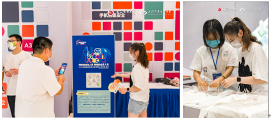 践行网络安全,“我与未来面对面”。暑假期间,学院与上海市商业会计学校共同组织学生前往“网络安全进商圈”活动线下体验馆打卡闯关,参与安游宣讲志愿者体验活动。学生以“安游宣讲志愿者”学习打卡为活动线索,在各项互动体验中闯关,并在现场制作一件“网络安全宣传大使T恤”,化身成为宣传网络安全的“大使”。线下打卡完成之后,学生一同参与现场的“我与未来面对面”长桌讨论活动,分享自己的大学学习生活经历和实习经验。本次活动,通过沉浸式展览打卡+线下座谈会讨论的形式,普及城市数字化转型中网络和数据安全的重要性;通过线下活动引导学生主动获取网络和数据安全的知识技能,增进网络安全的专业知识及发展趋势,更好的帮助学生了解网络安全专业的学习架构与知识体系,进一步明确了学习路径与未来方向。