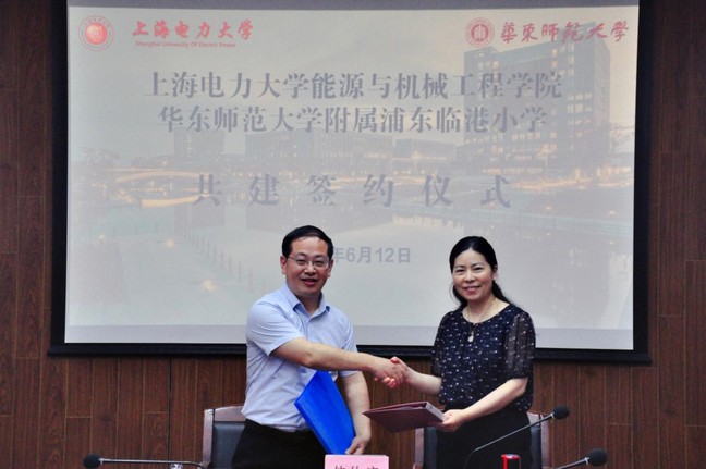 在与会人员的共同见证下,能源与机械工程学院与华东师范大学附属浦东临港小学签订了共建合作协议书。