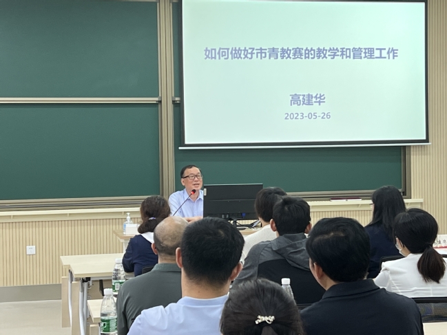 高建华教授以《如何做好市青教赛的教学与管理工作》为题,细致解读了青教赛的目的和意义,并从青教赛简介、高校青教赛说明、2022年高校青教赛介绍和个人体会等四个方面,全面系统地解析了青教赛的教学管理与内涵建设工作。他结合往届选手参赛情况,采用“个人体会+经验分享”的模式,从赛前准备、教案设计、教学过程、教学艺术、板书设计、形象展示、教学反思等组织者视角,逐一分析青教赛各环节的评审标准和注意事项,并总结经验教训,提出参考建议。高建华教授的讲座深入浅出,有效增强了青年教师“以赛促教”的意识,为我校青年教师的备赛和教学技能的提升奠定了坚实基础。