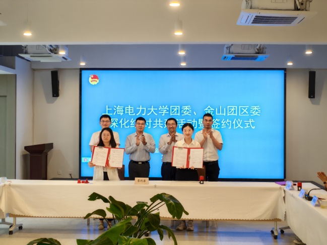 为深入学习贯彻习近平新时代中国特色社会主义思想和党的二十大精神,进一步推进深层次区域团建,6月21日下午,我校二级学院团委与金山区各镇团委结对共建活动暨签约仪式在金山区漕泾镇水库村举行,金山团区委书记王民民、我校团委书记兼学工部副部长马国祥等出席,此次活动由金山团区委副书记张鹏主持。
